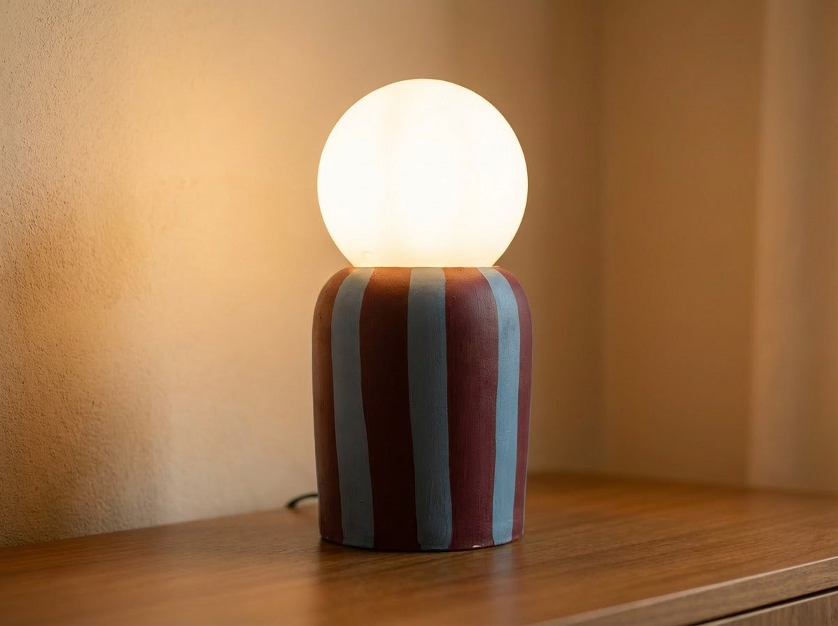 A compact statement lamp crafted from high-quality pottery, finished with warm terracotta and blush vertical stripes for a modern, artisanal... Read more