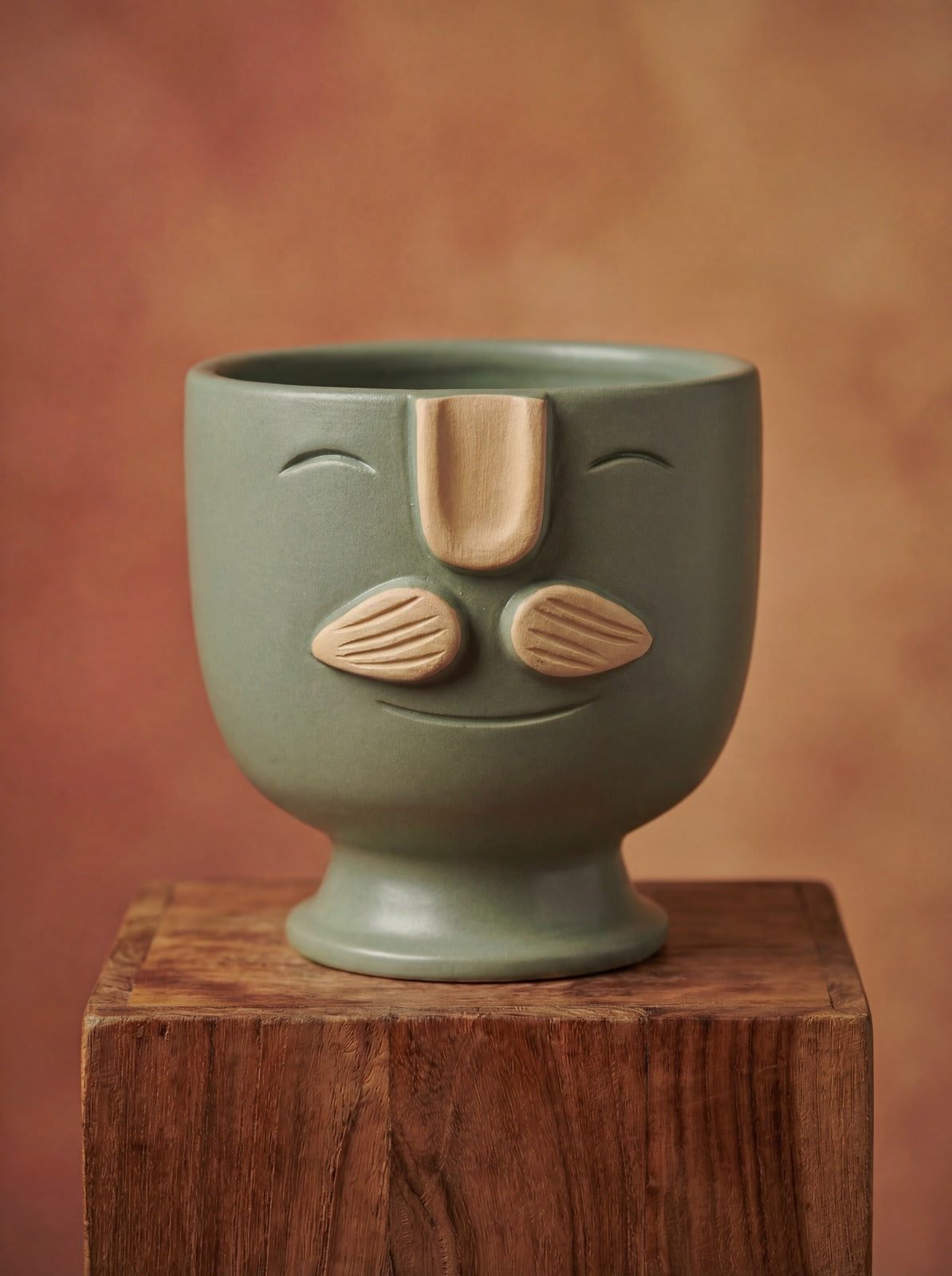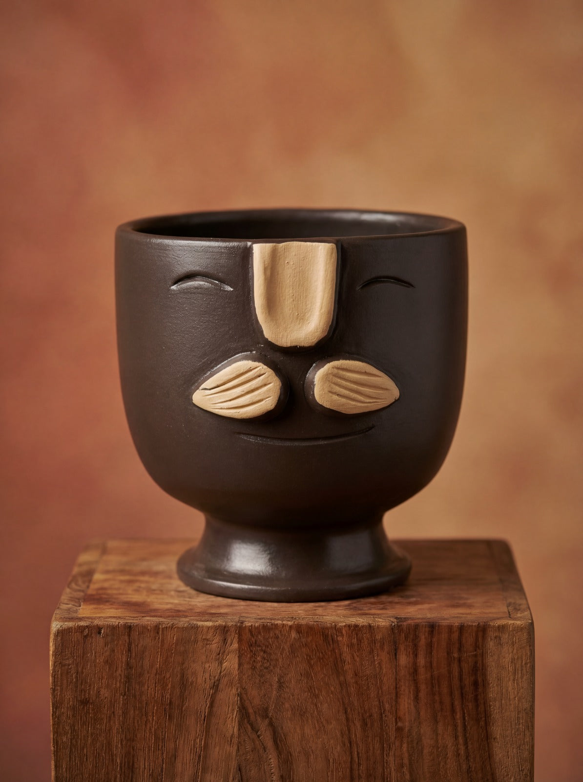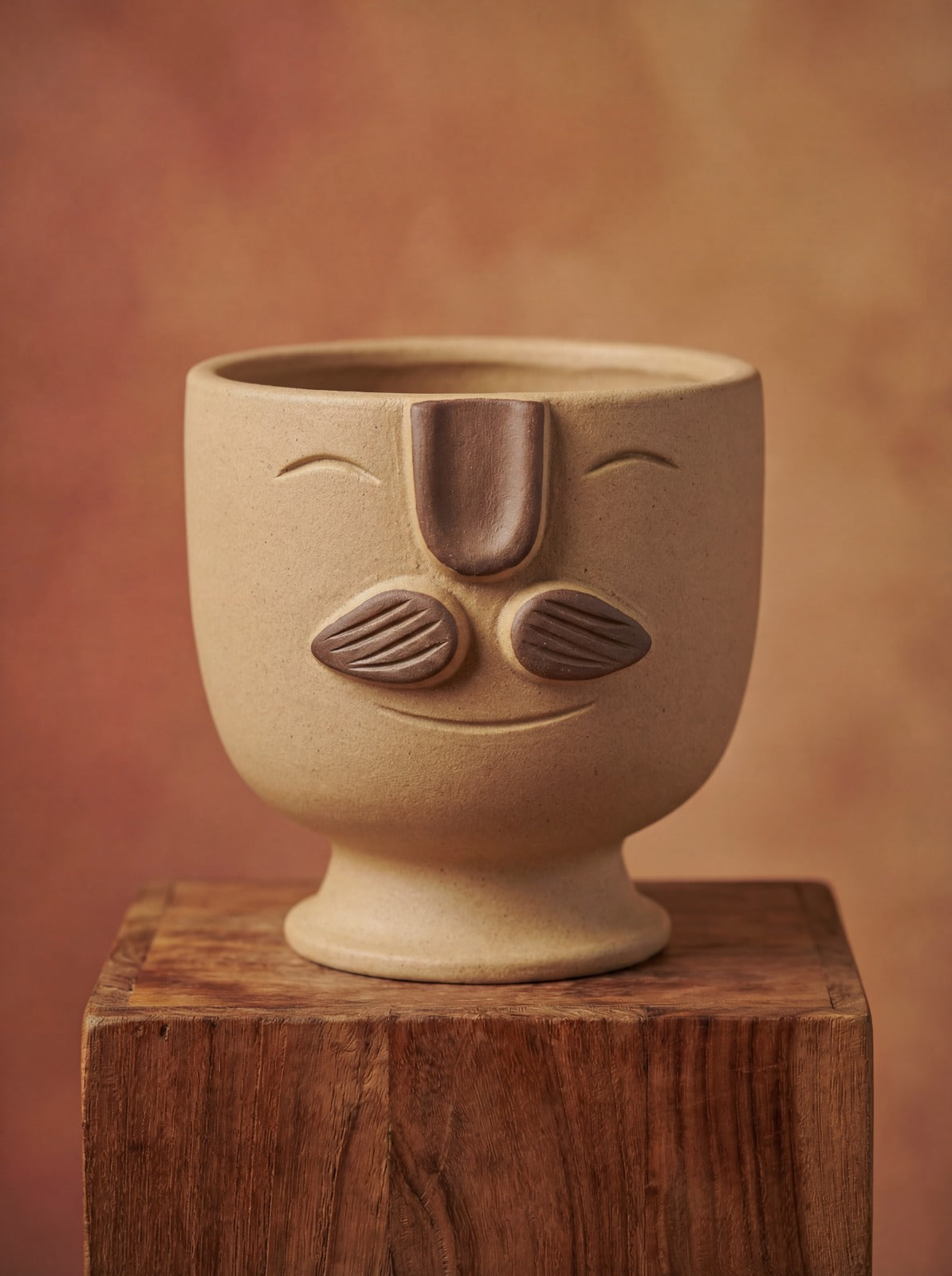 A playful pottery planter with a calm, smiling face—designed to bring character to any corner without feeling too busy. Made... Read more